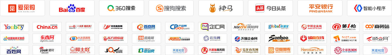 一比多 八方資源網 K2商務網 首商網 無憂商務網 金屬期貨 蜘蛛客 第一槍 淘金地 萬國企業網 誠商在線 搜好貨網 供求信息網 如意寶建站 如意問答 最新商機 中國供應商 卓采匯 搜貨寶 100推 企業聯合網 領商網